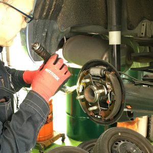 タイヤを外してブレーキ周りの点検も念入りにチェックします。