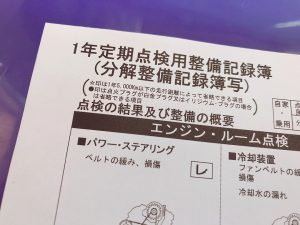 点検が終わった後に「1年定期点検整備記録簿』という”ちゃんと点検したよ!”という証をもらいます。